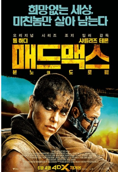 2015년 개봉한 영화 매드맥스: 분노의 도로는 조지 밀러 감독의 전설적인 액션 시리즈인 매드맥스의 네 번째 작품으로, 포스트 아포칼립스의 혼란스러운 세계를 배경으로 한 강렬한 액션 영화입니다. 이 영화는 지구가 자원 고갈과 환경 파괴로 황폐해진 미래의 세계를 그리며, 생존을 위해 끊임없는 전쟁과 폭력이 일상화된 세계에서 이야기를 전개합니다. 주인공 맥스 로카탄스키(톰 하디 분)는 잃어버린 가족을 찾기 위해 방황하는 외로운 전사로, 영화는 그가 무자비한 전쟁의 군주인 임모탄 조(휴 키스-번 분)에게 포로로 잡히면서 시작됩니다. 임모탄 조는 자원과 물을 지배하며, 그의 요새 불멸의 성은 폭력과 억압의 상징입니다. 이곳에서 맥스는 퓨리오사(샤를리즈 테론 분)라는 강인한 전사와 만나게 됩니다. 퓨리오사는 임모탄 조의 지배에서 벗어나고자 탈출을 계획하며, 그 과정에서 맥스와 함께 광란의 도로를 가로지르는 치열한 추격전이 펼쳐집니다. 영화의 중심에는 불모의 사막을 배경으로 한 장대한 추격전이 자리 잡고 있습니다. 퓨리오사와 맥스는 임모탄 조의 추격대를 피해 도주하며, 이 과정에서 격렬한 전투와 액션이 연출됩니다. 영화는 CGI와 실사 촬영을 혼합하여 만들어진 액션 시퀀스가 시각적으로 놀라운 경험을 선사하며, 퓨리오사와 맥스가 힘을 합쳐 싸우는 장면은 긴장감과 몰입감을 극대화시킵니다. 결국, 퓨리오사와 맥스는 임모탄 조의 압박을 뚫고 도망에 성공하며, 새로운 시작을 맞이합니다. 영화는 그들의 여정을 통해 개인적 성장과 희망을 암시하며, 혼돈의 세계 속에서도 인류의 생명력과 회복력에 대한 메시지를 전달합니다. 매드맥스: 분노의 도로는 액션과 스토리, 시각적 요소가 완벽하게 어우러진 작품으로, 기존 매드맥스 시리즈를 현대적으로 재해석하여 큰 호평을 받았습니다. 강렬한 비주얼과 긴박한 액션, 그리고 강력한 캐릭터들은 이 영화를 현대 액션 영화의 대표작으로 자리매김하게 만들었습니다.